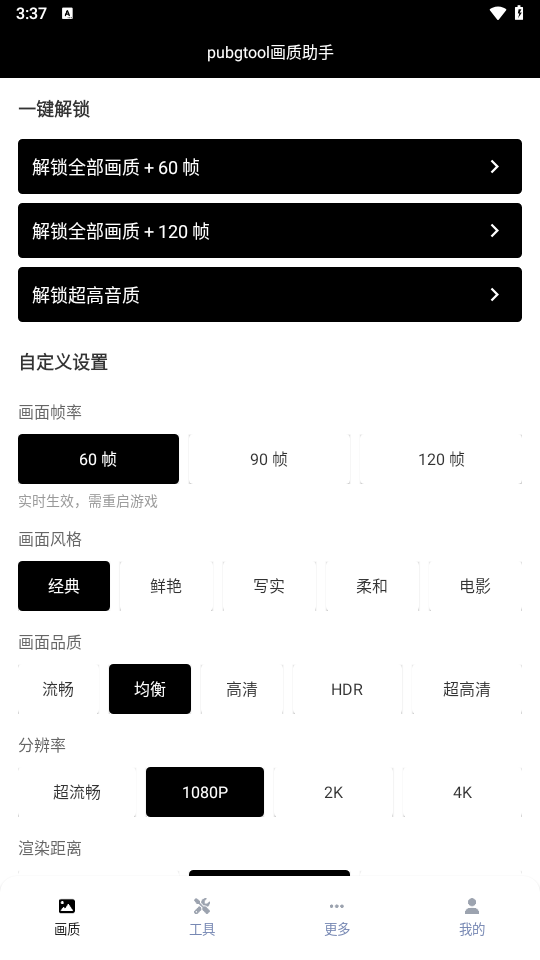 PUBGTool画质助手通过“一键解锁”与自定义设置实现画质优化