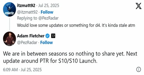 社区经理Adam Fletcher在社交平台上表示,当前处于赛季过渡期,“暂无新情报可透露”,下一次大规模改动最快也要等到第十赛季PTR或正式上线。