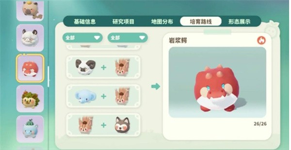 3、栗子鼠+蓬蓬哈/大耳象/卷卷绵→岩浆鳄蛋