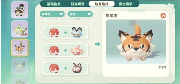 4、岩浆鳄+桃桃猴/蓝蓝鼠/蓬蓬哈→燃尾虎蛋