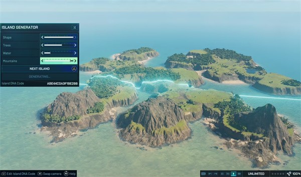 介绍称,该功能进一步提升了游戏的自由度,玩家可以通过调节地形、植被、水域和山脉等参数,自由创建无限数量的自定义岛屿布局。