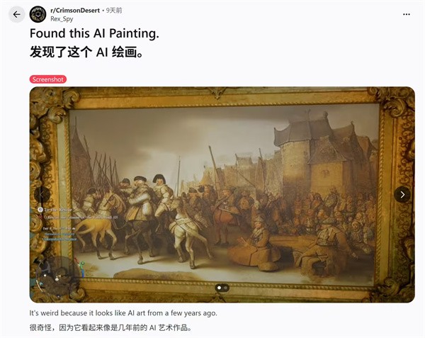 游戏发售初期,首批玩家指出游戏内的部分装饰画作带有浓重的AI生成特征。其中一幅描绘人马肢体畸形融合的画作尤为惊悚,其诡异的视觉效果引发了玩家强烈的恐怖谷心理不适。